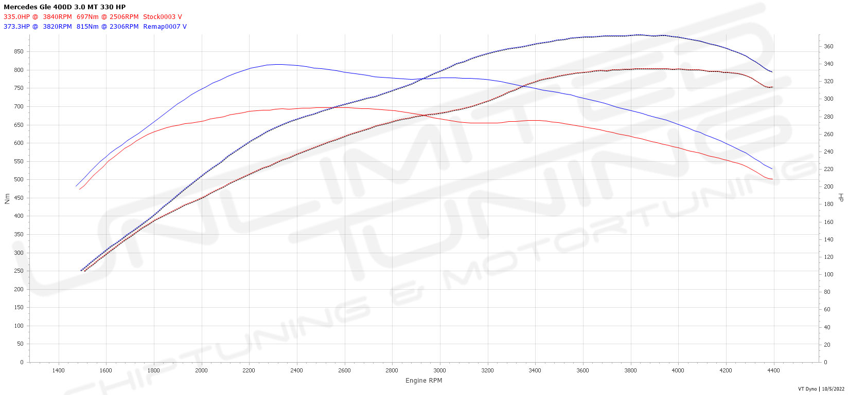Met chiptuning van de Mercedes GLC 400d (2925cc) 340 pk zullen de motorprestaties sterk verbeterd worden. De standaard waardes zijn de fabrieksopgave. Alle Eco- Normal- en Xtreme Tuning waardes zijn uitgemeten op een vermogenstestbank. Na het uitvoeren van de chiptuning zult u direct het verschil ervaren. De auto rijdt rustiger, stiller, sneller en zuiniger. Doordat u een hoger koppel tot uw beschikking heeft voelt de auto comfortabeler en "lichter" aan.